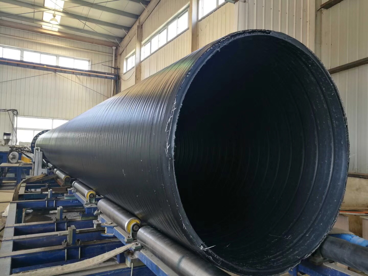 四川成都承插式中空壁塑鋼纏繞管,是以中空聚乙烯(PE)板帶為基體,用“Ω”形狀的鋼骨架為主要支撐結(jié)構(gòu),生產(chǎn)管道鋼骨架原材料為鍍鋅鋼帶,采用纏繞成型工藝,經(jīng)加工制成內(nèi)壁平直光滑,外壁呈波紋狀的承插式中空壁塑鋼纏繞管。