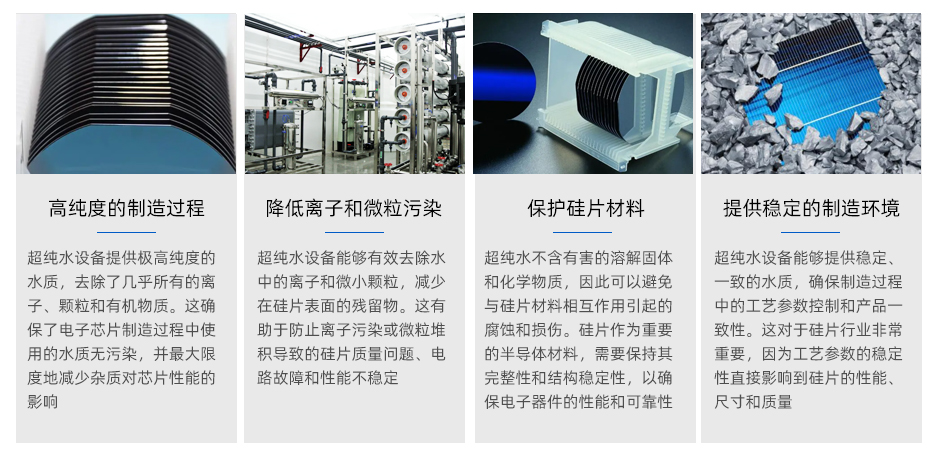 超純水可以用于硅片行業中各個環節的制造過程,包括硅晶圓清洗、切割、蝕刻、拋光和清潔等。它能夠去除雜質、顆粒和污染物,確保在制造過程中的高純度和無污染,從而提高硅片的質量和可靠性。