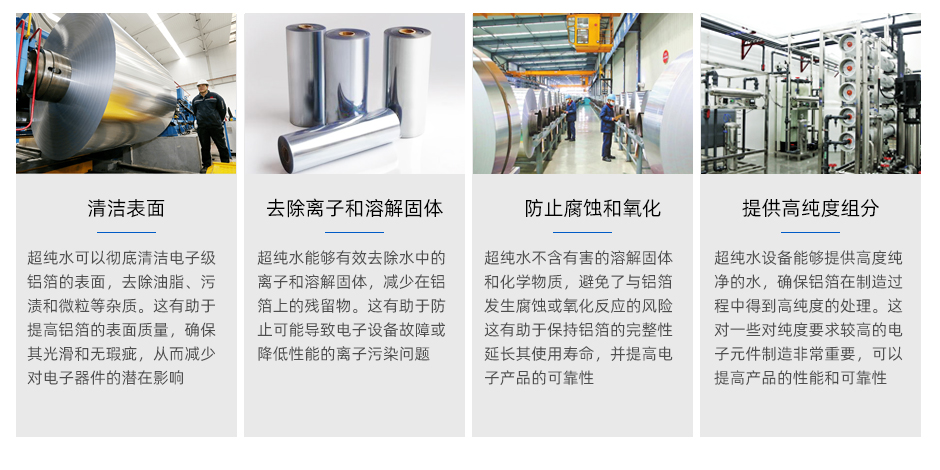 電子級鋁箔使用超純水可以徹底清潔電子級鋁箔的表面,去除油脂、污漬和微粒等雜質。這有助于提高鋁箔的表面質量,確保其光滑和無瑕疵,從而減少對電子器件的潛在影響