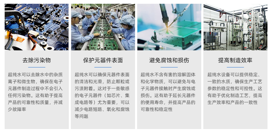 在電子元器件制造過程中,需要使用純度極高、無菌無雜質的水。超純水設備可以消除水中所有的離子、細菌、有機物和其他雜質,達到電子元器件制造過程對水純度的高要求。電子元器件非常敏感,即便微小的污染都可能影響元件性能和壽命。使用超純水設備生產電子元器件能夠保證產品品質穩定,避免一些不可控因素產生的影響