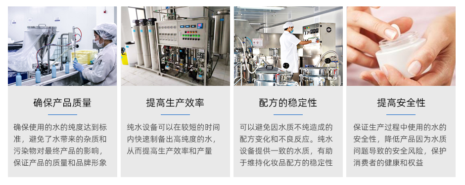 化妝品是一種高端的化學制品,對水的純度和質量有著非常高的要求。使用不符合化妝品生產標準的水,可能會影響產品的穩定性和質量,從而降低產品的銷售價值和市場占有率。