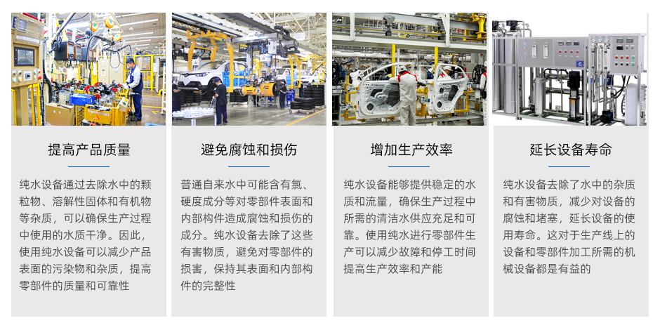 汽車零部件對質量和可靠性的要求非常高。超純水設備可以提供高純度、無雜質的水源,確保零部件制造過程中所用的水質符合嚴格的質量標準,避免因水質問題導致零部件質量下降。