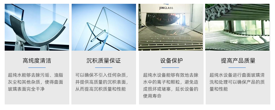 曲面玻璃通常用于光學和顯示器件等高端應用,對其純凈度的要求非常高。任何微小的雜質都可能影響到曲面玻璃的光學特性和品質。超純水設備可以去除水中的離子、溶解性固體、微生物、有機物和顆粒物等雜質,提供高純度的水源,確保曲面玻璃表面和內部的無可見雜質