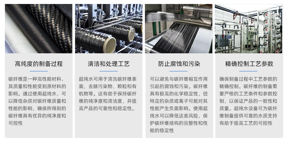 碳纖維是一種高性能材料,其質量和性能受到原材料的影響。通過使用超純水,可以降低雜質對碳纖維質量和性能的影響,確保所得到的碳纖維具有優異的純凈度和可控性